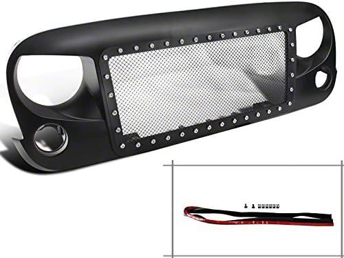 Application. This Angry Eye Rivet Mesh Grille; Matte Black is designed to fit 2007-2018 Jeep Wrangler JK models.