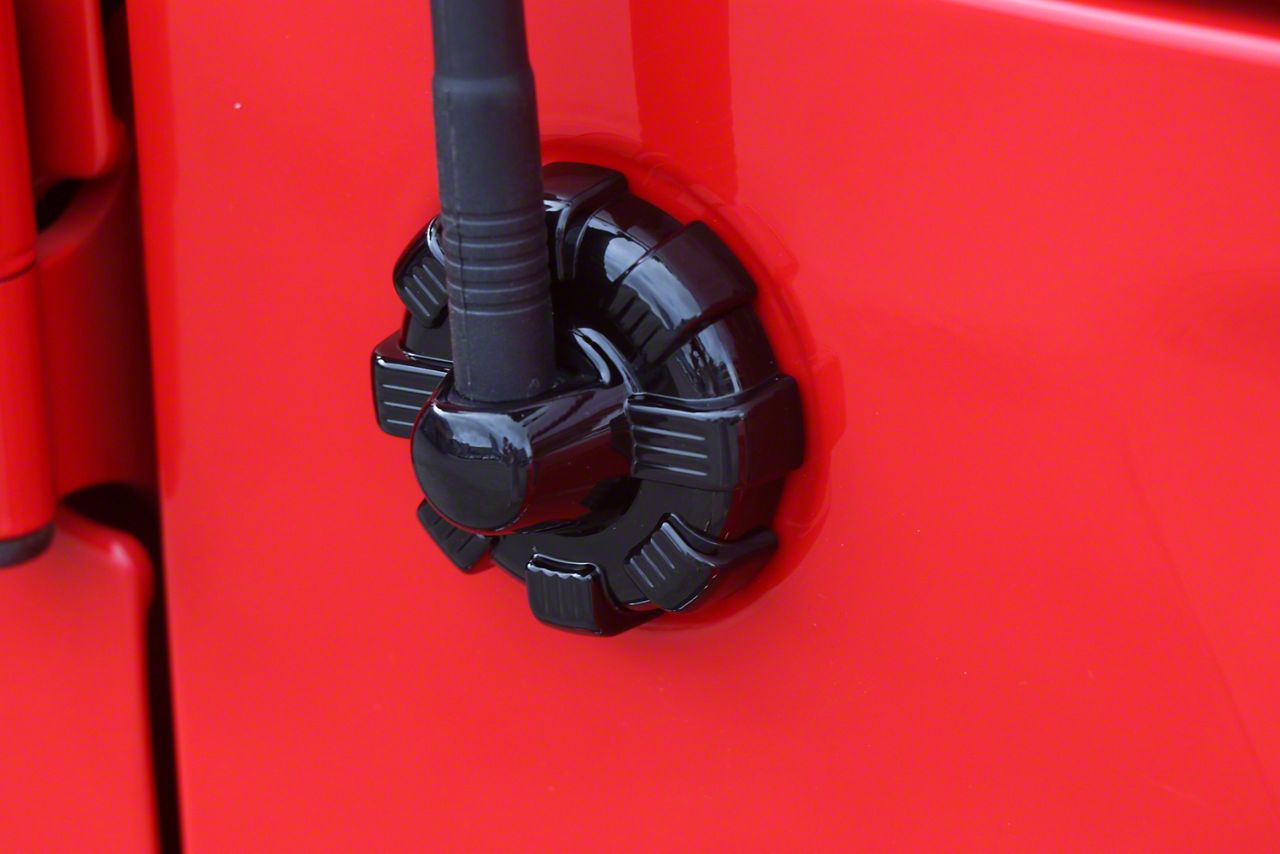 Style and Protection. Upgrade the appearance of your Wrangler with a black Antenna Base Cover. This Cover not only looks great, but it offers an extra layer of protection for your antenna against hazards found on the trail.