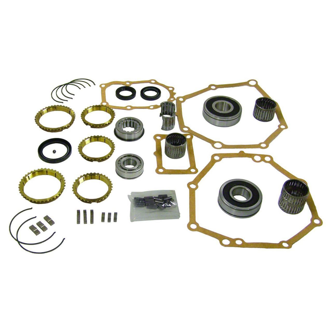 Overhaul Your Transmission. Beyond the major parts, such as gears and shafts, your transmission is made up of a bunch of smaller parts. Each of these small parts is essential to the transmission’s operation. Of course, all also wear out over time. With Crown Automotive’s Jeep Wrangler AX5 Transmission Master Overhaul Kit, you receive all of the small parts you need to complete a full transmission overhaul. The kit comes with beatings, gaskets, input and output seals, RTV sealant, blocking springs and rings, and some other small parts.
