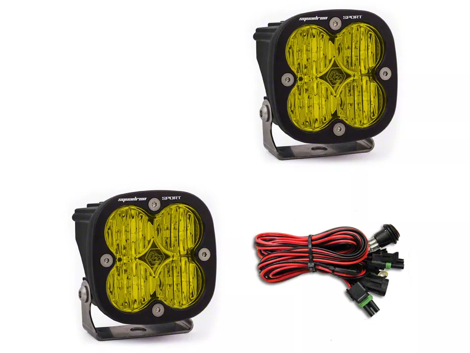 High-End Function. A superior addition to your 1966-2026 Jeep CJ and Wrangler, Baja Designs' Pair of Squadron Sport Amber LED Light Wide Cornering Beam is crafted to produce a high-performance beam that will easily cut through rain, snow, dust, and darkness to improve your visibility. Featuring a low-profile build that is traditional yet rugged, this pair of small lights will give you the illumination you need to stay safe at all times.