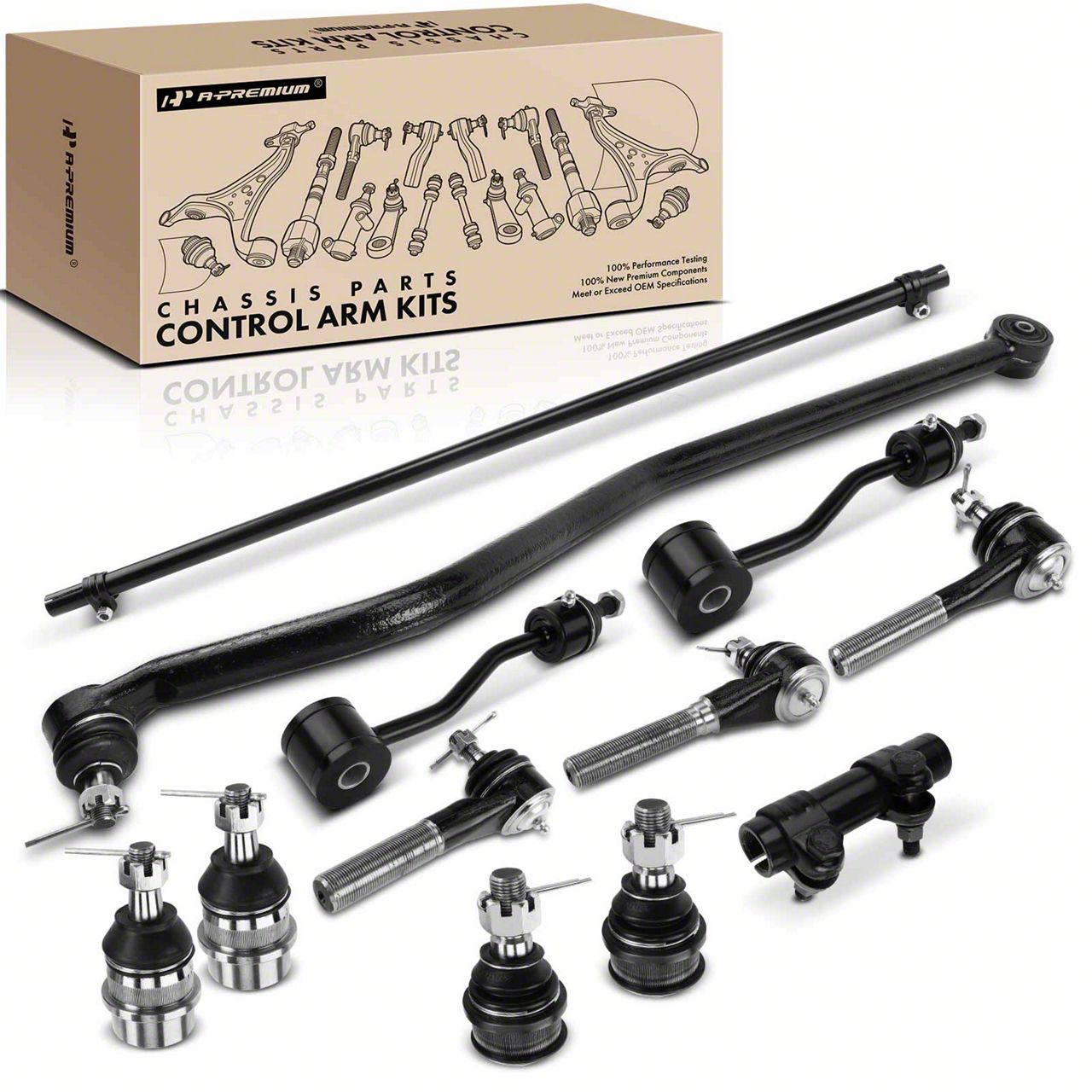 Built for Longevity and Dependability. Each component in this kit is constructed from heavy-duty steel, ensuring maximum strength and durability. The corrosion-resistant coating protects against rust and wear, extending the lifespan of the parts even in harsh environments. Replacing worn or damaged suspension and steering components with this kit not only improves vehicle handling but also enhances safety by maintaining proper alignment and reducing steering play. This direct replacement kit is precision-engineered to meet OEM standards, offering a seamless fit and restoring your Jeep's performance to like-new condition.