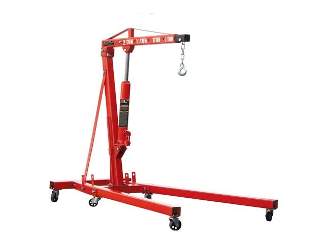 Durable and Compact. For automotive repair, system upgrades, and other heavy lifting needs, this Big Red Engine Hoist with Leveler; 2-Ton Capacity is a tool you can rely on. Sporting an intelligent fold-in joint design, it features a sturdy base capable of handling 2-ton engines, and it folds up for easy storage and cleaning.