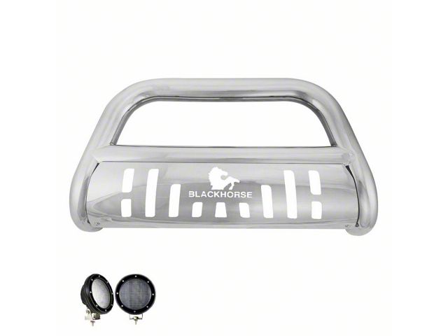 Description. Polished Stainless Steel Bull Bar Kit (BBJPWR18-SP-PLFB) by Black Horse Off Road compatible with 2018-2023 Jeep Wrangler JL / 2020-2023-Jeep Gladiator. No-Drill/ Vehicle-Specific Application for Custom Fit. Environmentally friendly option to chrome-plating. Solid frame-mounted bolt-on. Welded 1-piece construction. Rust-resistant Stainless-Steel, mandrel-bent tubing. Removable skid plate. Comes with a set of 5.3” Black Round Flood LED Lights. Includes Installation Instructions & Mounting Brackets & Hardware. May interfere with front sensors if equipped. Limited Lifetime Manufacturer’s Limited Warranty.