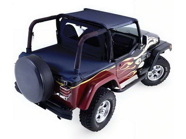 Total Coverage. The Jeep Wrangler Cab Soft Top and Tonneau Cover with Tinted Windows provides total coverage over the front cabin and rear tonneau bed so you can leave your Jeep protected on the trail. Door skins are sold separately.