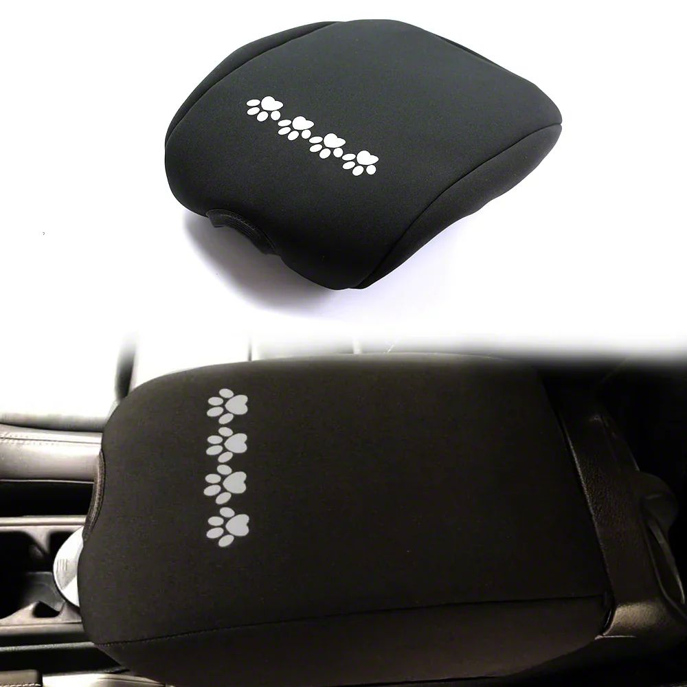 Cute dog paw prints on the armrest cover add a fun touch to your Jeep interior, while the black color matches your seats.