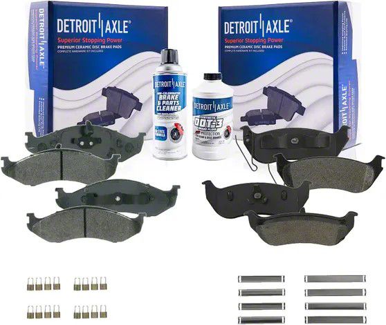 Safety and Efficiency. Upgrade your vehicle's braking performance with our Ceramic Brake Pads for Front and Rear. Experience smooth and quiet stops every time you hit the brakes, thanks to their advanced design. This package includes not only the high-quality brake pads but also essential components like brake fluid and cleaner, ensuring a comprehensive solution for your braking needs.