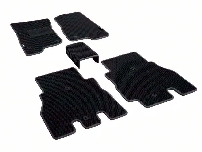 Construction and Appearance. Made from durable, all-weather black material, these liners are designed to withstand daily wear and tear. Raised edges help contain spills and dirt, while the non-slip backing ensures they stay securely in place during use.