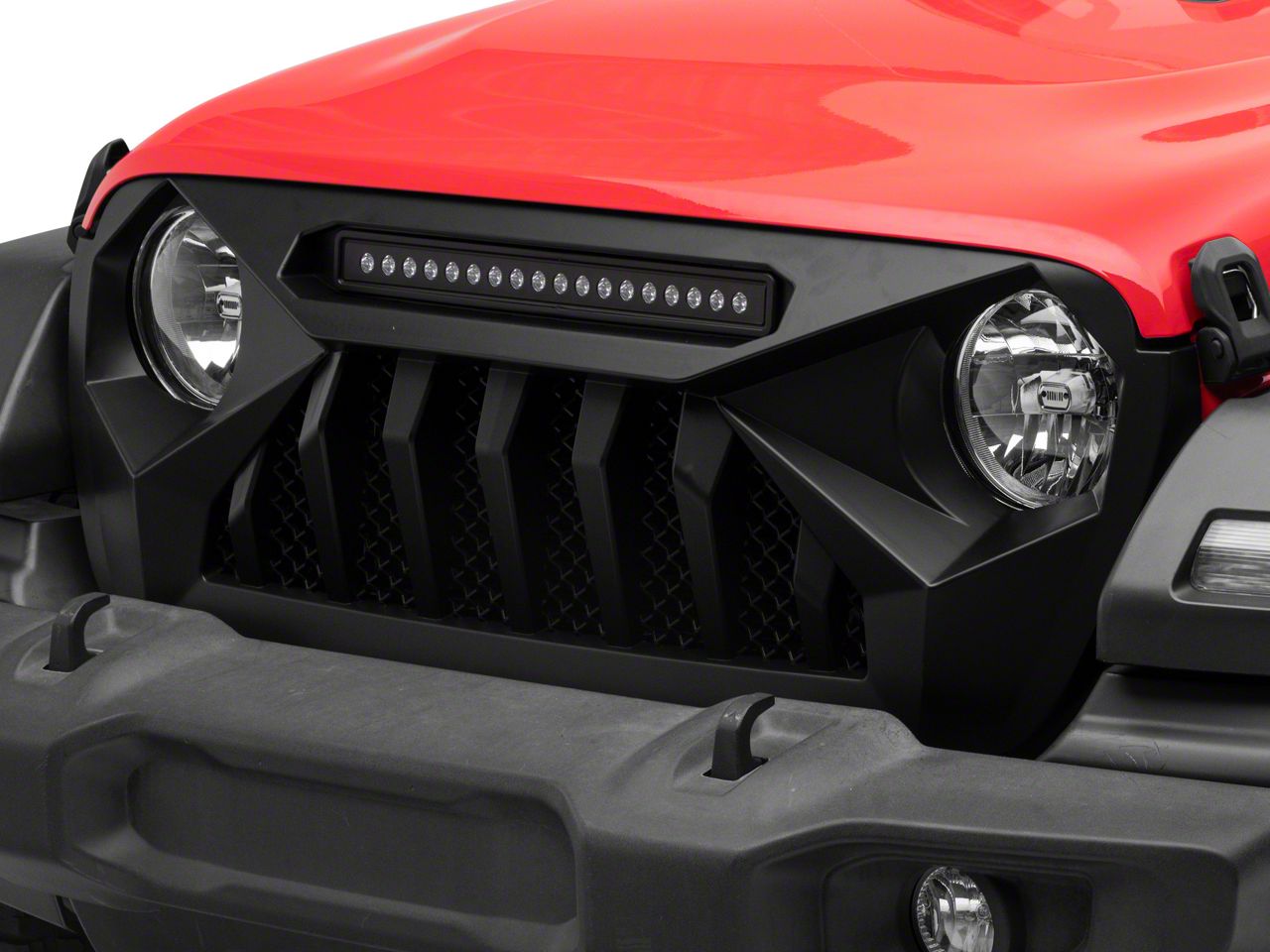 Application. This American Modified Demon Grille with LED Off-road Lights suits all 2018-2026 Jeep Wrangler JLs.