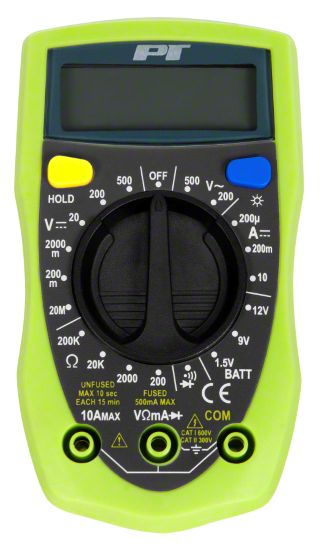 Digital Automotive Multimeter; AC/DC Voltage, DC Current, Resistance, Battery Test