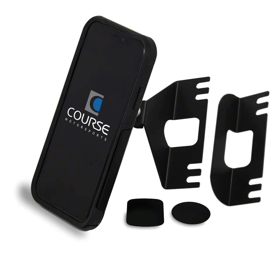 Quality Construction. The CNC-cut and powder-coated brackets of this Direct Fit Phone Mount, along with the CNC-machined and anodized pivot ball, provide durability and a sleek, premium look. Moreover, the Neodymium magnetic mount and steel pad work together to keep your phone securely attached while driving.