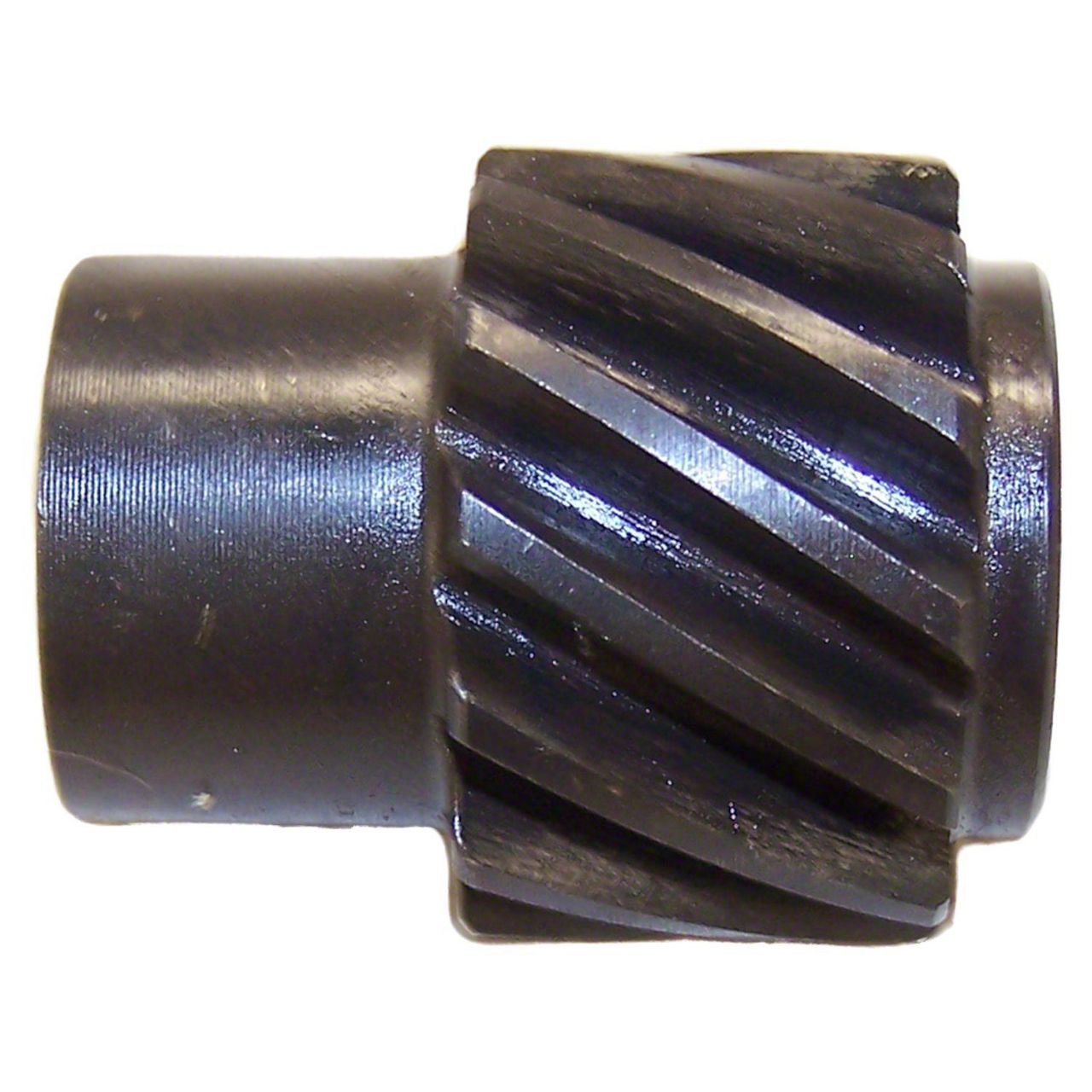 Gray Stock Drive Gear. This replacement Distributor Drive Gear uses an angled gear orientation for installing to the cam at a slight angle with dependable contact and performance. This gear is gray in color and polished for smooth performance with minimal friction.