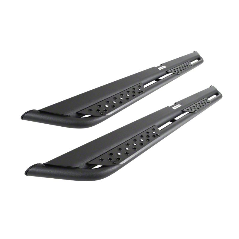 Rugged and Functional Design. Enhance the functionality and appearance of your 2018-2026 Jeep Wrangler JL 4-Door with the Go Rhino Dominator Xtreme DT Side Step Bars. These high-quality side step bars feature a textured black finish, providing a rugged and aggressive look that complements the off-road aesthetics of your Jeep. The durable steel construction ensures reliable performance and long-lasting durability, making these step bars an essential upgrade for both daily driving and off-road adventures.
