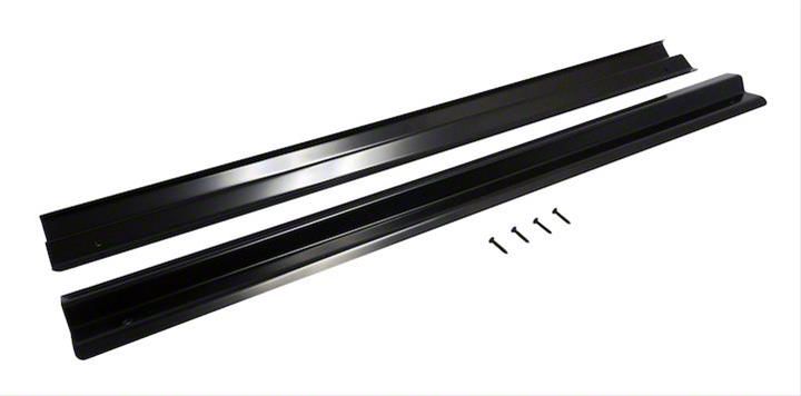 Description. Door Sill Plate Set; Gloss Black Powder Coated Stainless Steel Entry Guard Set for 1997-2006 Jeep TJ Wrangler; Includes Mounting Screws