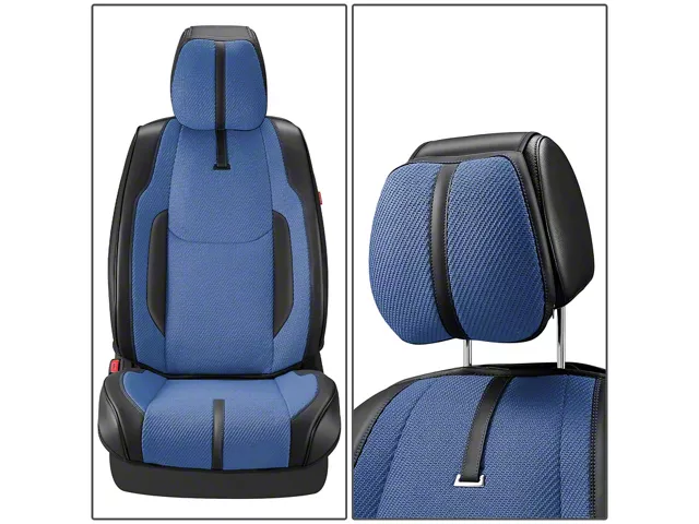 Construction and Appearance. Featuring a bold dark blue and matte black finish, the Drive Series Seat Covers combine modern styling with tough, high-quality materials. Each cover is precision-stitched for a secure fit that resists stretching, tearing, and fading over time. The dual-tone finish complements a wide range of interior color schemes while maintaining a sleek, professional look. Built to be soft to the touch yet highly durable, these covers provide protection without sacrificing comfort. Their resilient fabric layer prevents damage from friction and UV exposure, keeping seats looking new for years of use.