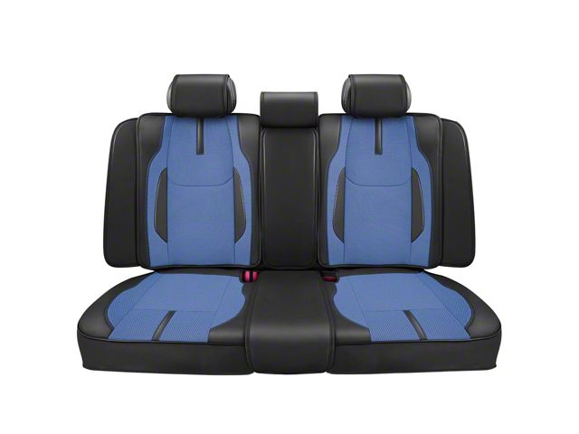 Construction and Appearance. Crafted with a two-tone finish in dark blue and matte black, these seat covers deliver a sleek and modern appearance. The materials are designed to resist everyday damage while remaining comfortable for both short commutes and long drives. Their durable construction ensures long-lasting use while maintaining their stylish finish.