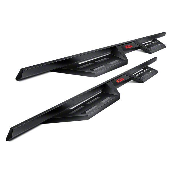 Robust Build Quality. These drop-down style nerf side step bars utilize high-quality carbon steel in their construction for maximum durability. Furthermore, these drop-down nerf side step bars are machine-formed to precise specifications before getting welded by artisans, ensuring an exact fit and added rigidity. The louvered step plates for their part are likewise machine-formed from high-grade plate steel for strength. Finally, these nerf side step bars are finished in a wear-resistant matte black powder coating, offering superior protection against rust as well as rugged good looks.