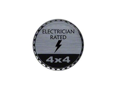 Electricians Represent. Represent your profession with this Electrician Rated Badge. This front fender badge mimics the look of your Wrangler’s trail-rated badge and features the Electrician Rated text with a lightning graphic, giving your ride a dynamic style accent. Additionally, this badge can be mounted on any flat surface, allowing you to show off your profession with pride in other applications.