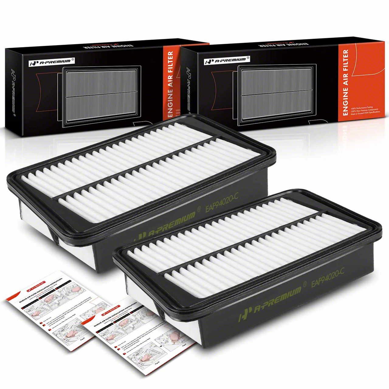 Engine Air Filter Replacement. The Engine Air Filters with Rigid Panel; Set of Two provide essential filtration to prevent dirt and contaminants from entering the engine. Designed for reliable airflow and engine protection, these filters help maintain optimal performance and fuel efficiency.