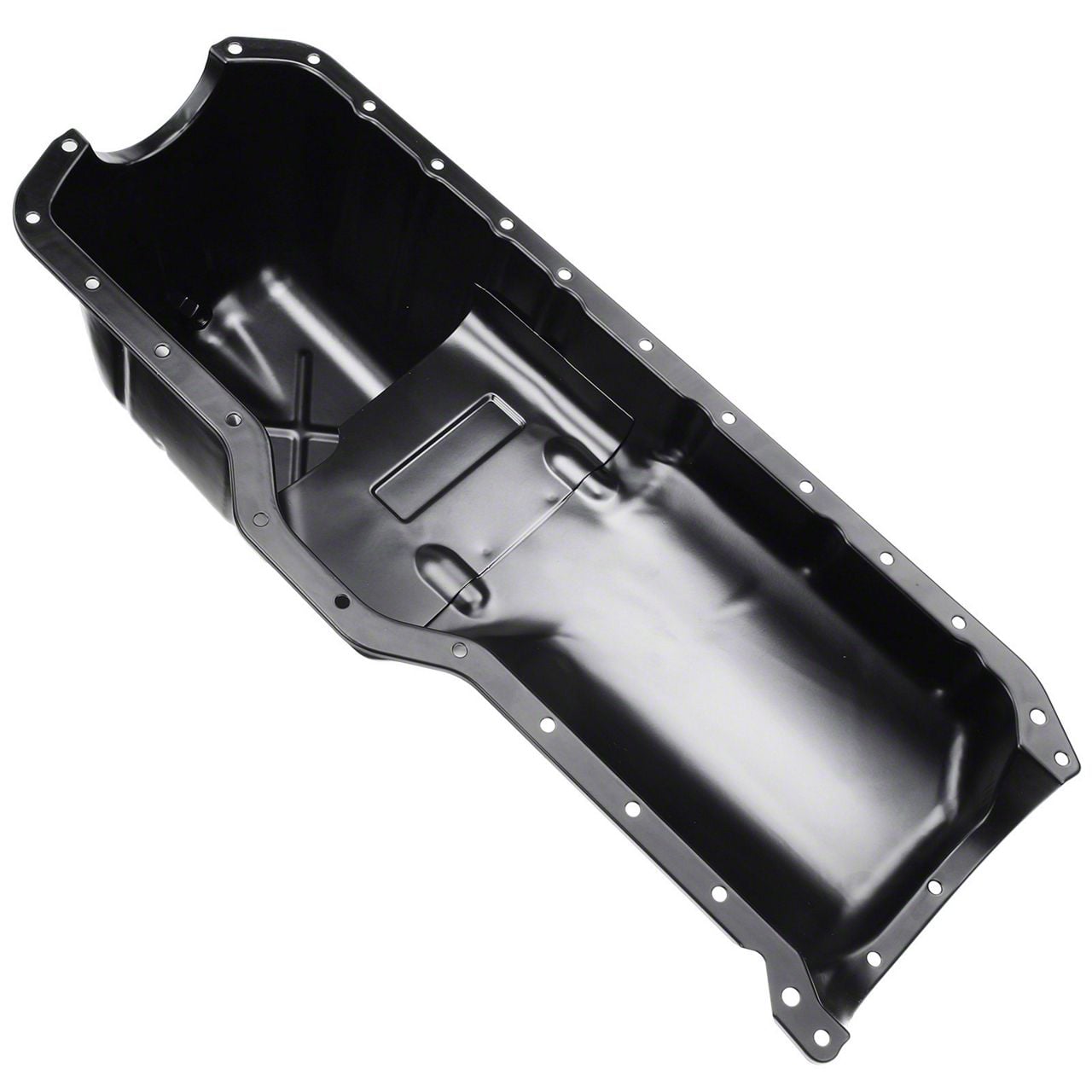 Construction and Appearance. Constructed from heavy-duty steel, this oil pan features a black finish and a wet sump design with 26 bolt holes for secure installation. The durable material and coating provide corrosion resistance and long-lasting service life.