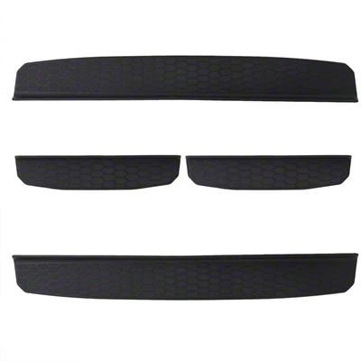 Protective Guards. Made for the Jeep Wrangler JL 4-Door, these Entry Sill Guards comes in a textured black finish and protects against scratches and scruffs. Fully tested for resilience and fluid resistance, these guards are crafted from plastic and don’t interfere with the door or its sealing.
