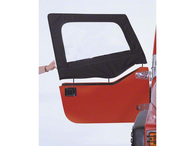 Rugged Construction. The Jeep Wrangler Factory Replacement Half Door Skins with Frames use sturdy black diamond fabric to protect the upper halves of your front doors. These frames guard against scuffs, scratches, and moisture damage, making them ideal for bumpy off-road and trail drives.