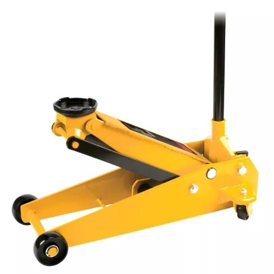 Construction and Appearance. Built from high-strength steel, the 3-ton floor jack is designed for durability and long-term use under high pressure. It features a corrosion-resistant finish and a textured grip handle for better control. Its low-profile design allows it to fit under a variety of vehicles, and the wide base ensures increased stability during operation.