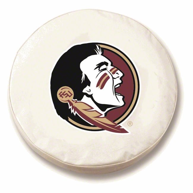 High-Quality Construction. This Florida State University White Head Spare Tire Cover can withstand prolonged exposure under the extreme UV rays and harsh outdoor elements. This premium cover is made of high-grade vinyl and durable threads with high-strength properties to resist fading and tearing. In addition, the UV-resistant inks maintain the aggressive design even with long exposure to the intense sunlight.