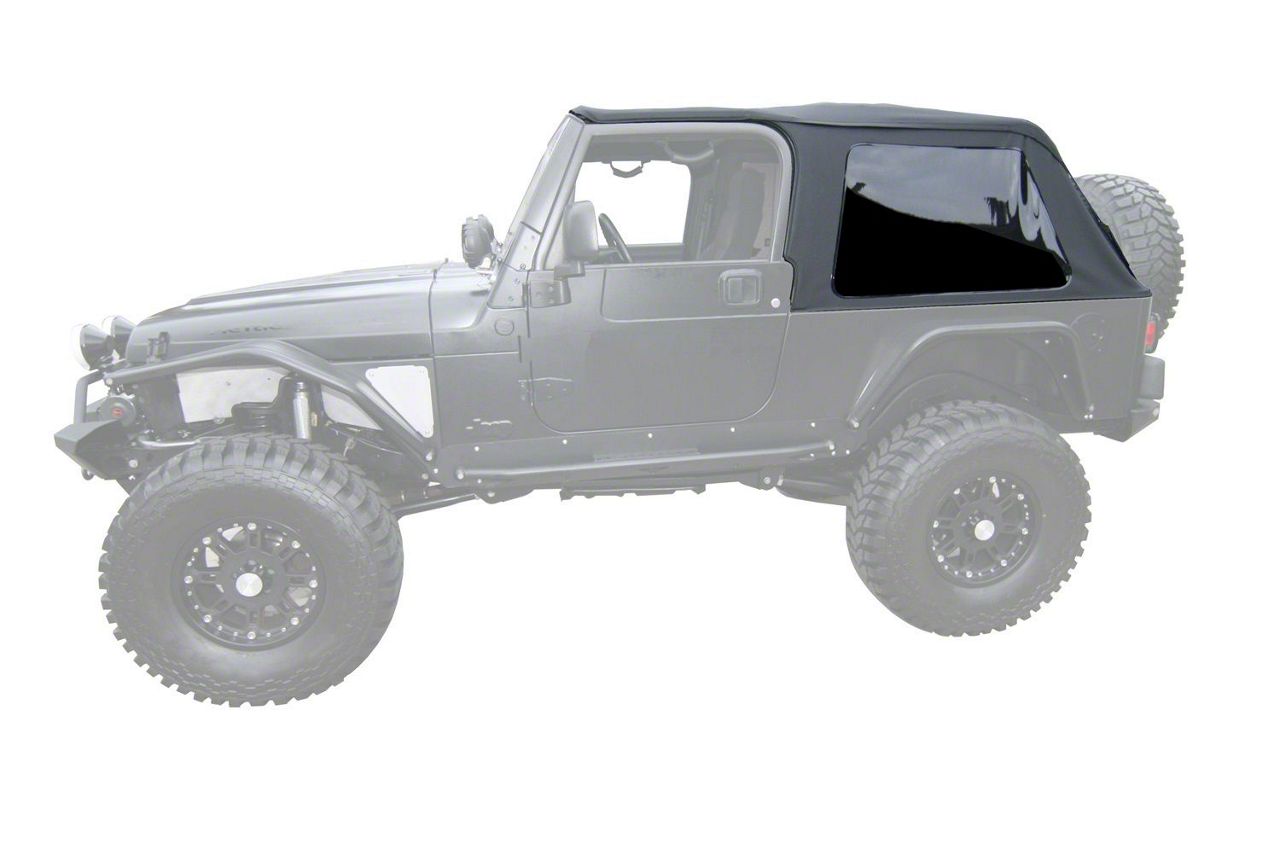 Off-Road Style and Function. Maintain your TJ Wrangler’s rugged off-road style while adding some more functionality with this Black Diamond Frameless Trail Top Soft Top. This soft top’s specialized frameless design enables more efficient setup and breakdown so you spend less time in your garage and more time on the road. Eliminating the frames also enables the side windows to be larger, improving visibility. This soft top also features a number of storage compartments for storing a wide range of small items you may need.