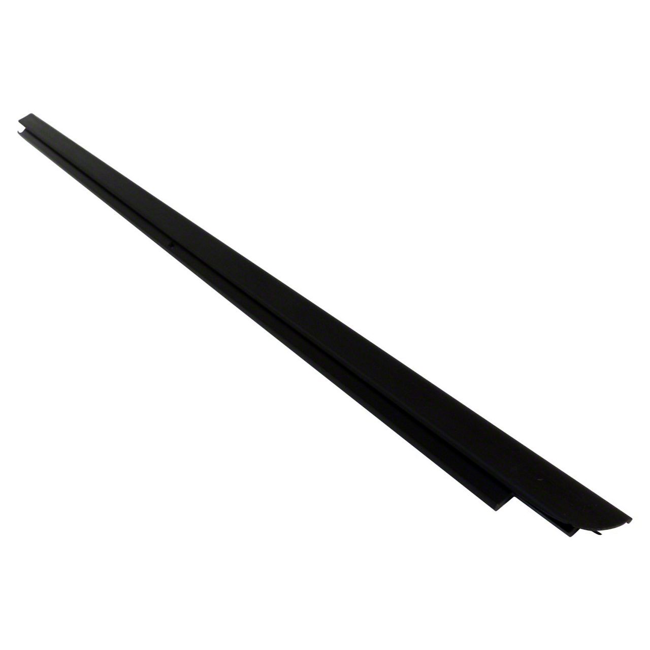 Construction and Appearance. Finished in a tidy matte black, the seal blends seamlessly with exterior trim for a factory-correct presentation. OE compatible and comparable materials provide the right balance of flexibility and resilience, maintaining consistent edge pressure along the glass through repeated cycles. The molded lip and carrier profile are engineered for smooth contact, helping to minimize squeaks while effectively squeegeeing water and road film during window travel.