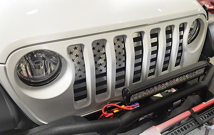 Application. This American flag front grille can be installed on the 2018-2026 Jeep Wrangler JL models. Please contact customer service to find out about potential exclusions.