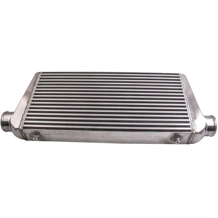 Construction and Appearance. Constructed from high-quality aluminum alloy, this intercooler features a bar and plate core design known for its durability, heat dissipation efficiency, and pressure resistance. The lightweight construction allows for flexible mounting in custom setups, while its robust design ensures long-term reliability in street or track use.
