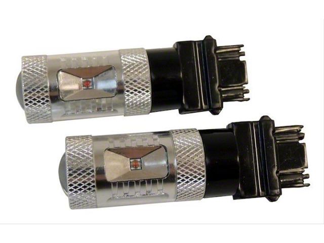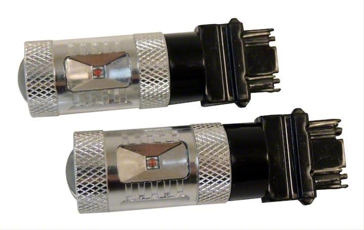 Long-Lasting LEDs. These bulbs are rated to last as long as 50,000 hours for long-lasting performance that will keep you from having to make a replacement. The bulbs are made from high-output LEDs that will output up to 1,200 lumens while requiring only 7.2 watts of power. The bulbs create a 360-degree light pattern, and they fit into a 3157-style socket. These lights are meant as parking bulbs but can also be used as turn signals in some vehicles as well.