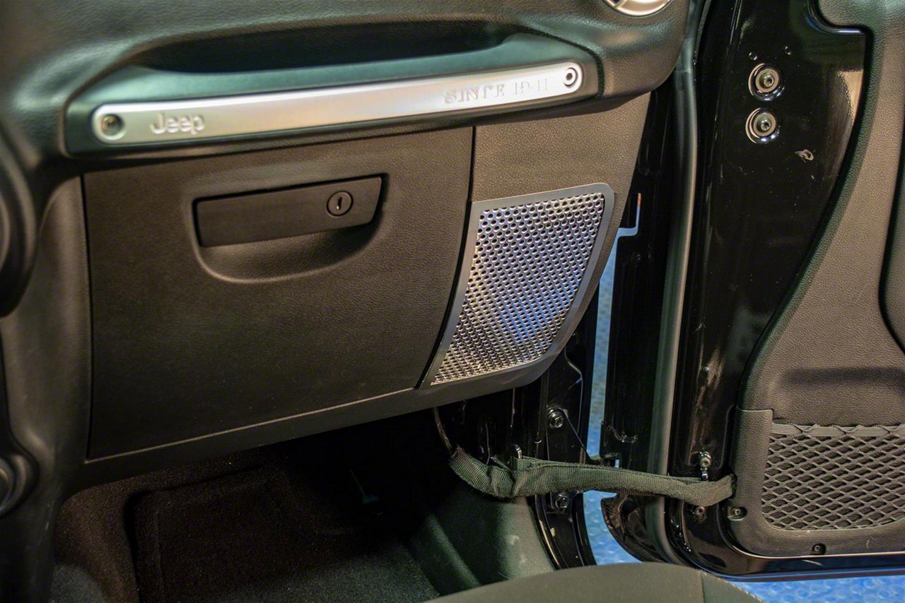 Application. The American flag-styled Front Speaker Grille is precision-molded to fit all 2007-2018 Jeep Wrangler JK models. Minor adjustments could be required when applying on a non-factory speaker.