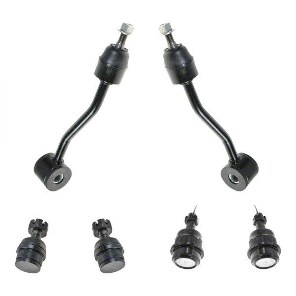 Suspension Fix. If rusty joints and arms are causing trouble and noise on your Jeep Wrangler than this Front Upper and Lower Ball Joints with Sway Bar Links is an easy solution to get you running like you used to. It offers stability and compatibility, similar to your old model, restoring it to the original driving feel and balance, both on standard roads and dirt paths.