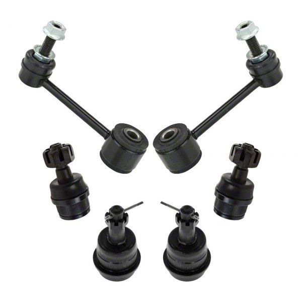 Excellent Direct-Fit Replacements. For better restoration of your vehicle’s performance, it is recommended that replacements should be done in pairs or sets/kits. The Front Upper and Lower Ball Joints with Sway Bar Links include pairs of front lower and front upper ball joints and a pair of front sway bar links. Your vehicle’s front suspension is essential in making sure you’ll have full control of your vehicle, so if your front suspension parts are showing signs of wear and tear and are in need of replacements, don’t wait until it’s too late, get yourself this Front Upper and Lower Ball Joints with Sway Bar Links set now.