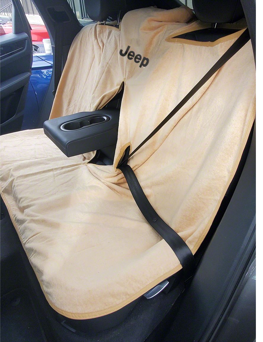 Full Back Seat Towel with Jeep Logo; Tan (Universal; Some Adaptation May Be Required)