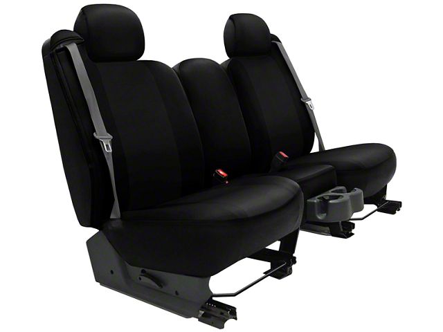 Better Comfort. The neoprene fabric of the Genuine Neoprene Custom 1st Row Bucket Seat Covers; Black/Black are soft and cushioned, providing added comfort for long drives or rugged trail rides. Its insulating properties also help regulate seat temperature, staying cooler in the summer and warmer in colder months.