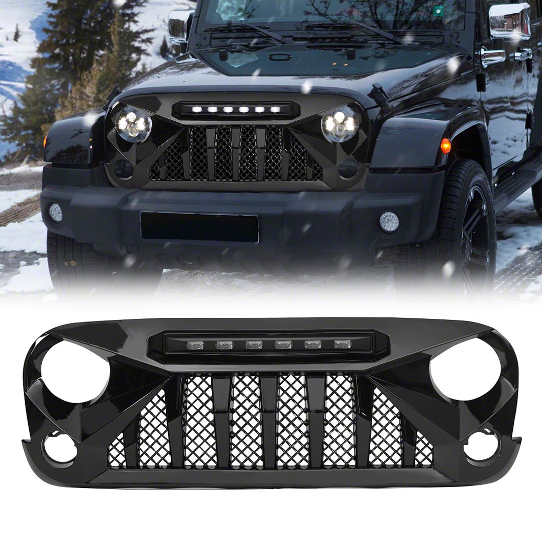 Application. This American Modified Gladiator Grille with LED Off-Road Lights fits 2007 to 2018 Jeep Wrangler JK.