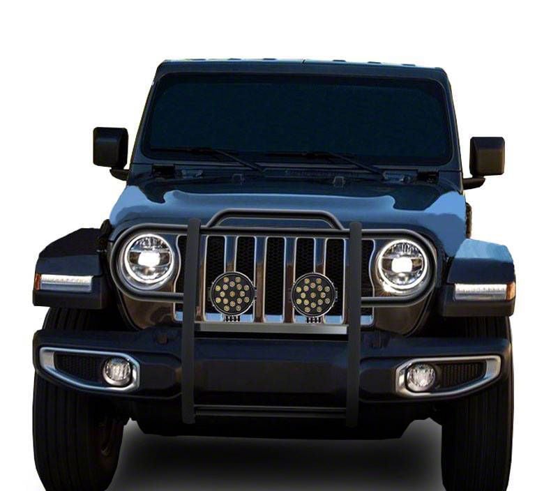 Application. The Grille Guard with 7-Inch Round LED Lights; Black fits all 2018-2026 Jeep Wrangler JL models.