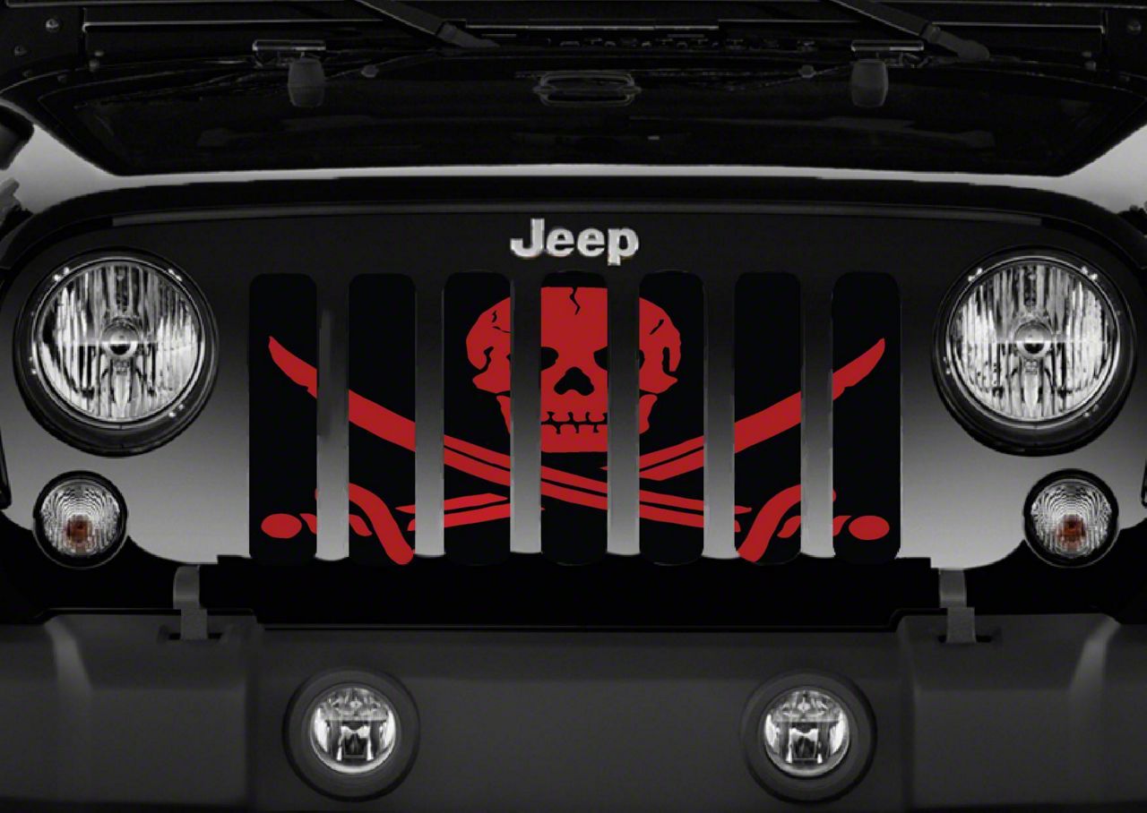 Personalize Your Jeep. This Grille Insert; Ahoy Matey Dark Red Pirate Flag will customize your Jeep in your own way. Rest assured, it will not compromise the integrity of your grille. Your radiator and engine compartment still gets the proper airflow needed to perform.