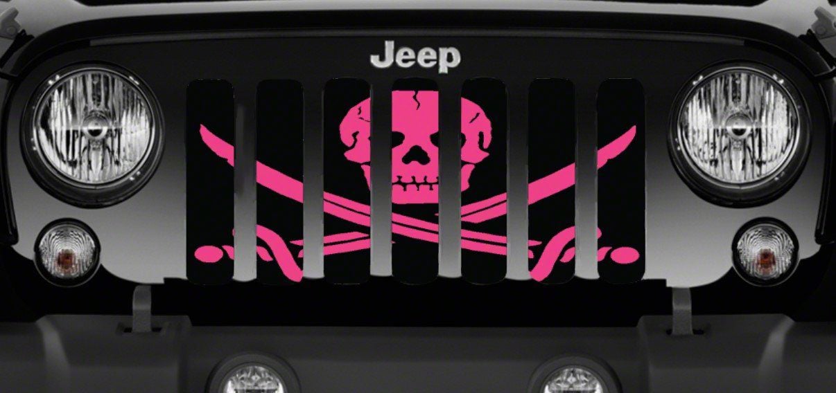 Personalize Your Jeep. This Grille Insert; Ahoy Matey Hot Pink Pirate Flag will customize your Jeep in your own way. Rest assured, it will not compromise the integrity of your grille. Your radiator and engine compartment still gets the proper airflow needed to perform.