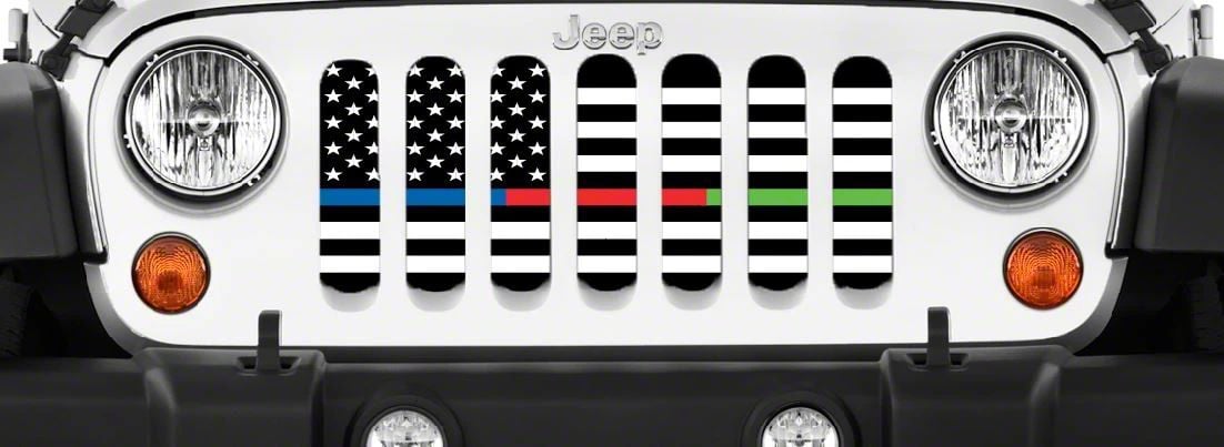 Personalize Your Jeep. This Grille Insert; American Black and White Back the Blue, Fire Department and Military will customize your Jeep in your own way. Rest assured, it will not compromise the integrity of your grille. Your radiator and engine compartment still gets the proper airflow needed to perform.