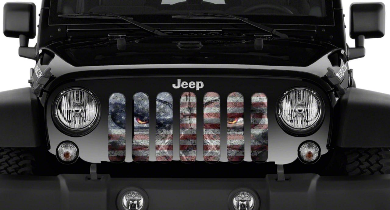 Personalize Your Jeep. This Grille Insert; Angry Patriot will customize your Jeep in your own way. Rest assured, it will not compromise the integrity of your grille. Your radiator and engine compartment still gets the proper airflow needed to perform.