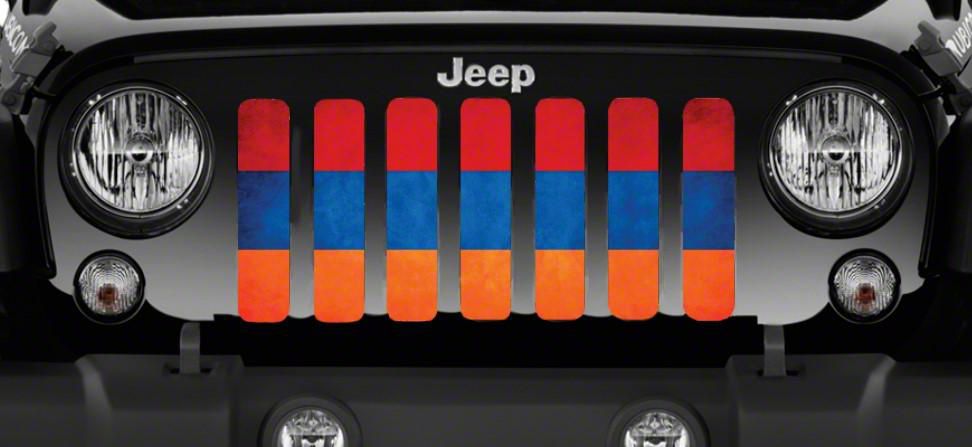 Personalize Your Jeep. This Grille Insert; Armenian Flag will customize your Jeep in your own way. Rest assured, it will not compromise the integrity of your grille. Your radiator and engine compartment still gets the proper airflow needed to perform.