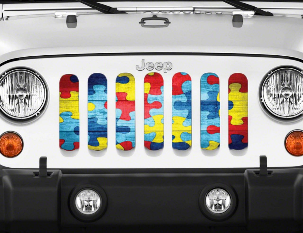 Personalize Your Jeep. This Grille Insert; Autism Awareness Wooden Puzzle Piece will customize your Jeep in your own way. Rest assured, it will not compromise the integrity of your grille. Your radiator and engine compartment still gets the proper airflow needed to perform.
