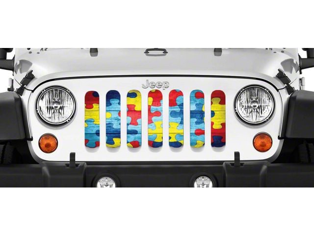 Personalize Your Jeep. This Grille Insert; Autism Awareness Wooden Puzzle Piece will customize your Jeep in your own way. Rest assured, it will not compromise the integrity of your grille. Your radiator and engine compartment still gets the proper airflow needed to perform.