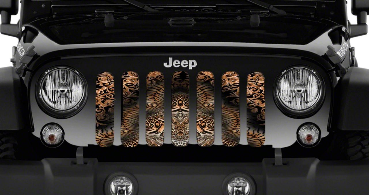 Personalize Your Jeep. This Grille Insert; Baroque Animal Print will customize your Jeep in your own way. Rest assured, it will not compromise the integrity of your grille. Your radiator and engine compartment still gets the proper airflow needed to perform.