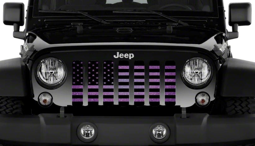 Grille Insert; Black American Flag on a Purple Fleck (18-26 Jeep Wrangler JL)Find parts that fit my vehicle