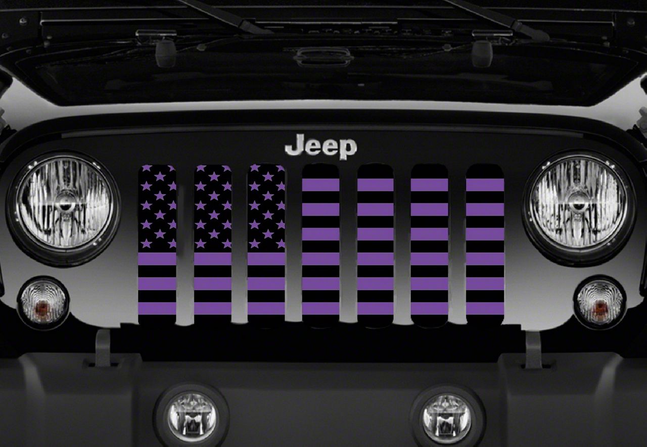 Personalize Your Jeep. This Grille Insert; Black and Purple American Flag will customize your Jeep in your own way. Rest assured, it will not compromise the integrity of your grille. Your radiator and engine compartment still gets the proper airflow needed to perform.