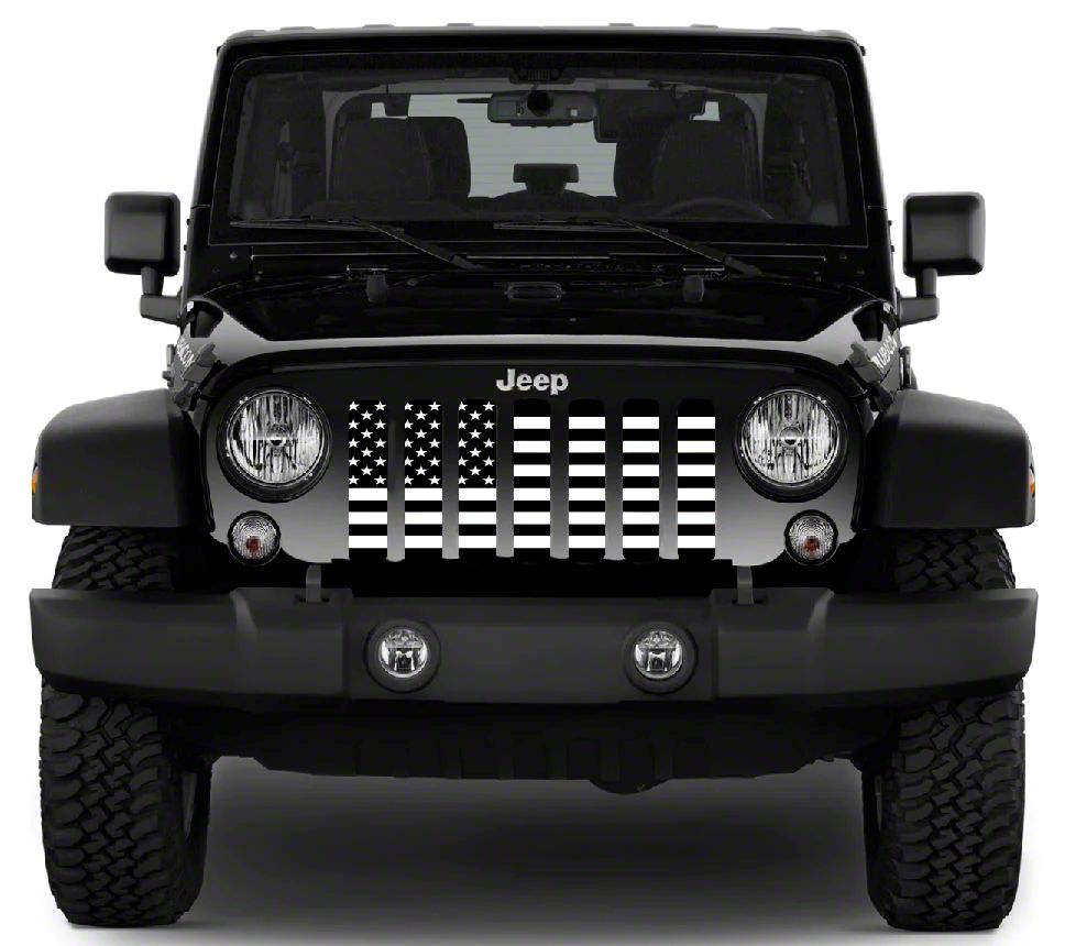 Stylish Protection. The Grille Insert is a rugged yet stylish upgrade designed to defend your vehicle while adding a bold aesthetic touch. Built for 2018–2023 Jeep Wrangler JL models with TrailCam, this insert combines practical protection with a matte white American flag design over a matte black base. It shields against road debris while ensuring that your vehicle maintains efficient airflow to essential components.